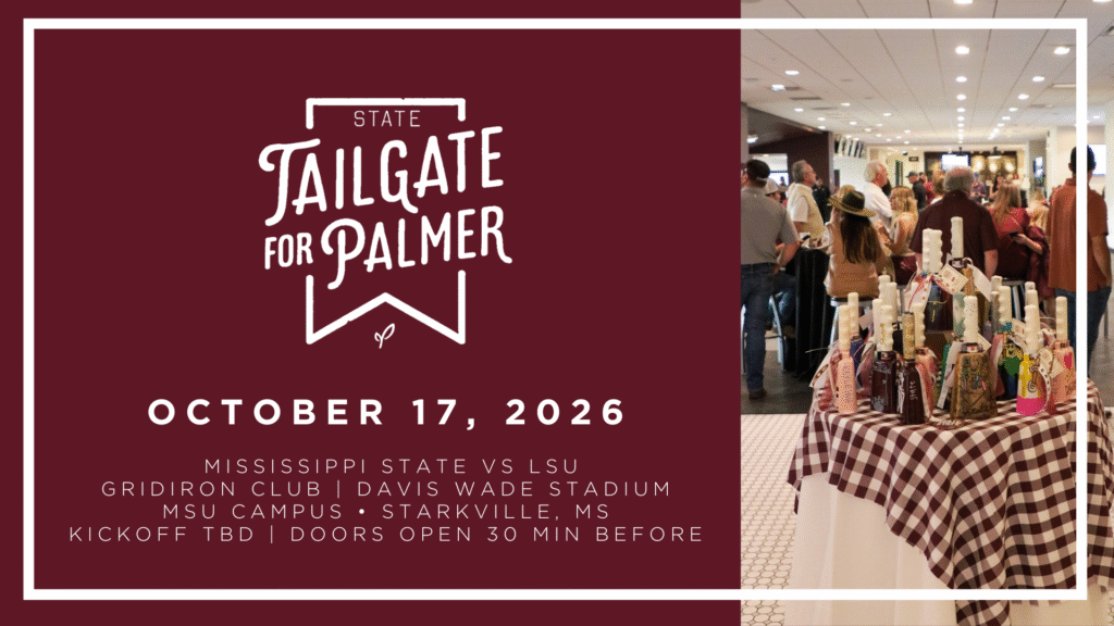 The 8th annual Tailgate for Palmer will be the ultimate watch party featuring Mississippi State vs LSU on the big screen inside the Gridiron Club in Davis Wade Stadium! Bulldog…