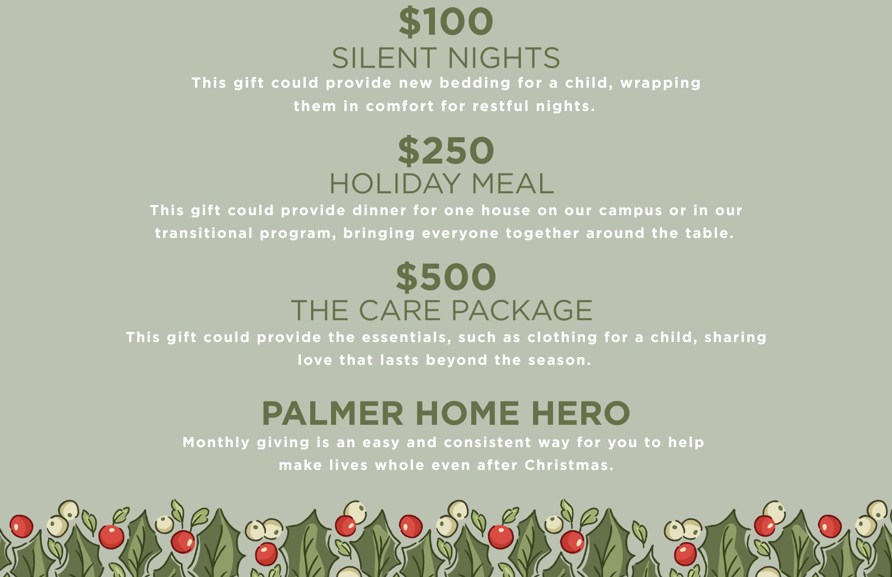 At Palmer Home, we believe every child deserves the wonder of Christmas—through the warmth of a safe home and the joy of being deeply loved. Your gift makes that possible.